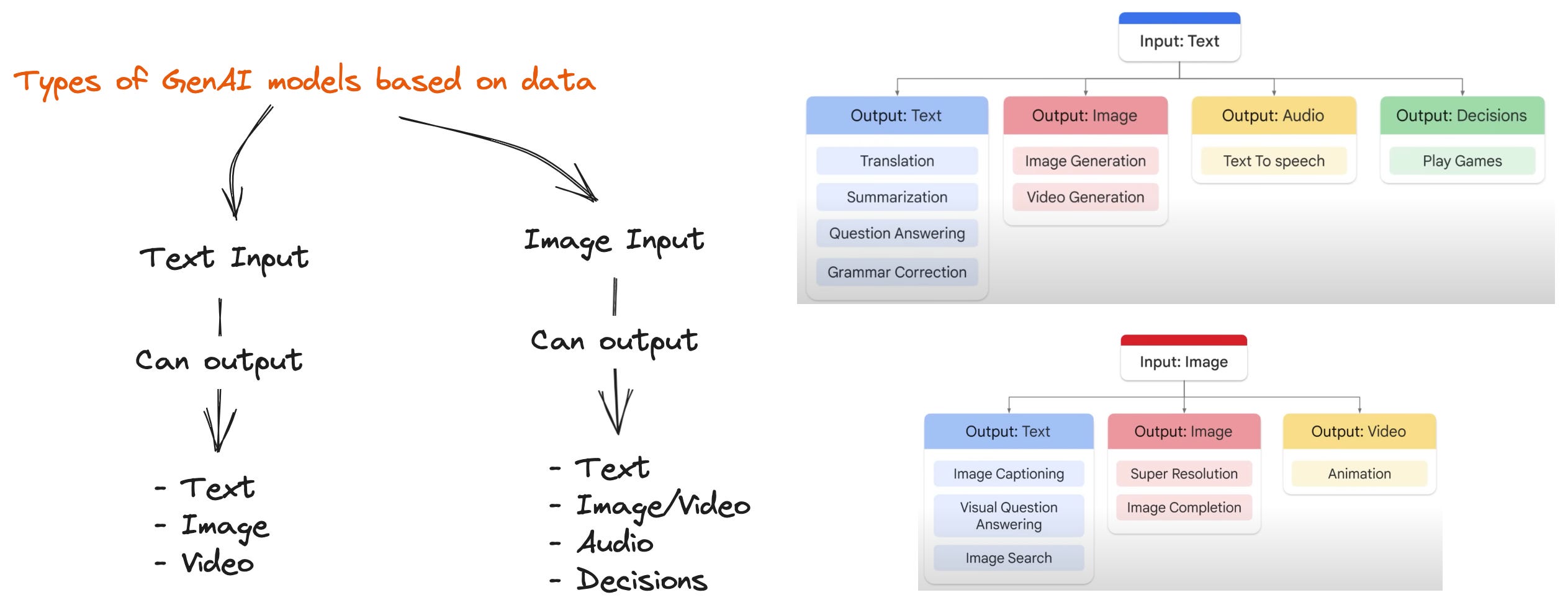 The training process for generative models is a versatile endeavor, encompassing both labeled and unlabeled data. Moreover, these models adapt seamlessly to structured or unstructured data, making them remarkably flexible. Their capabilities span a wide array of tasks, from the finesse of text summarization and clever text rephrasing to the intricacies of question answering, language translations, and even the remarkable feat of conjuring images and videos from textual descriptions. Not to mention their prowess in crafting captivating captions and delving into a multitude of other creative possibilities, all eloquently depicted in the illustrative charts below.